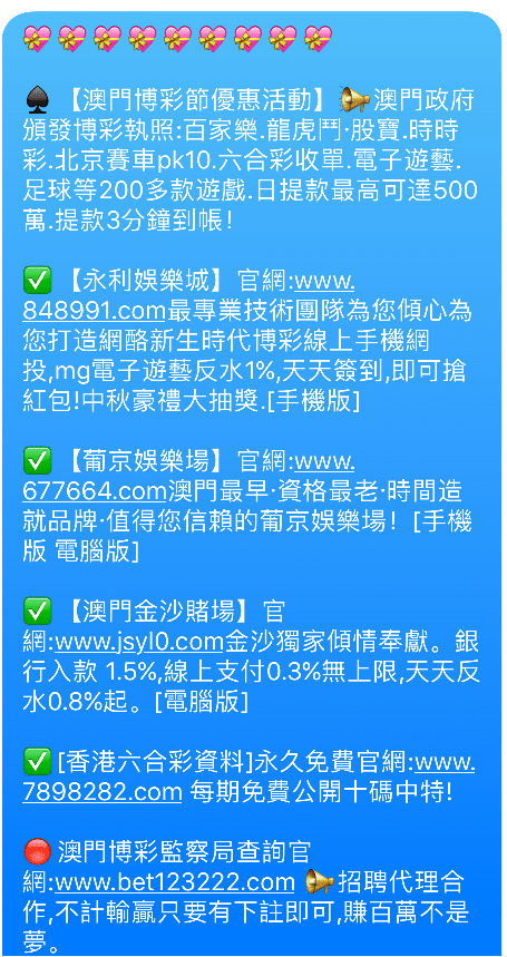 The other major change is in the type of messages being sent, whereas originally the type of scams being sent were mostly aggressive advertising campaigns, trying to sell counterfeit good, now we are seeing many more spam campaigns featured gambling websites. The content of these messages often are of the following format: